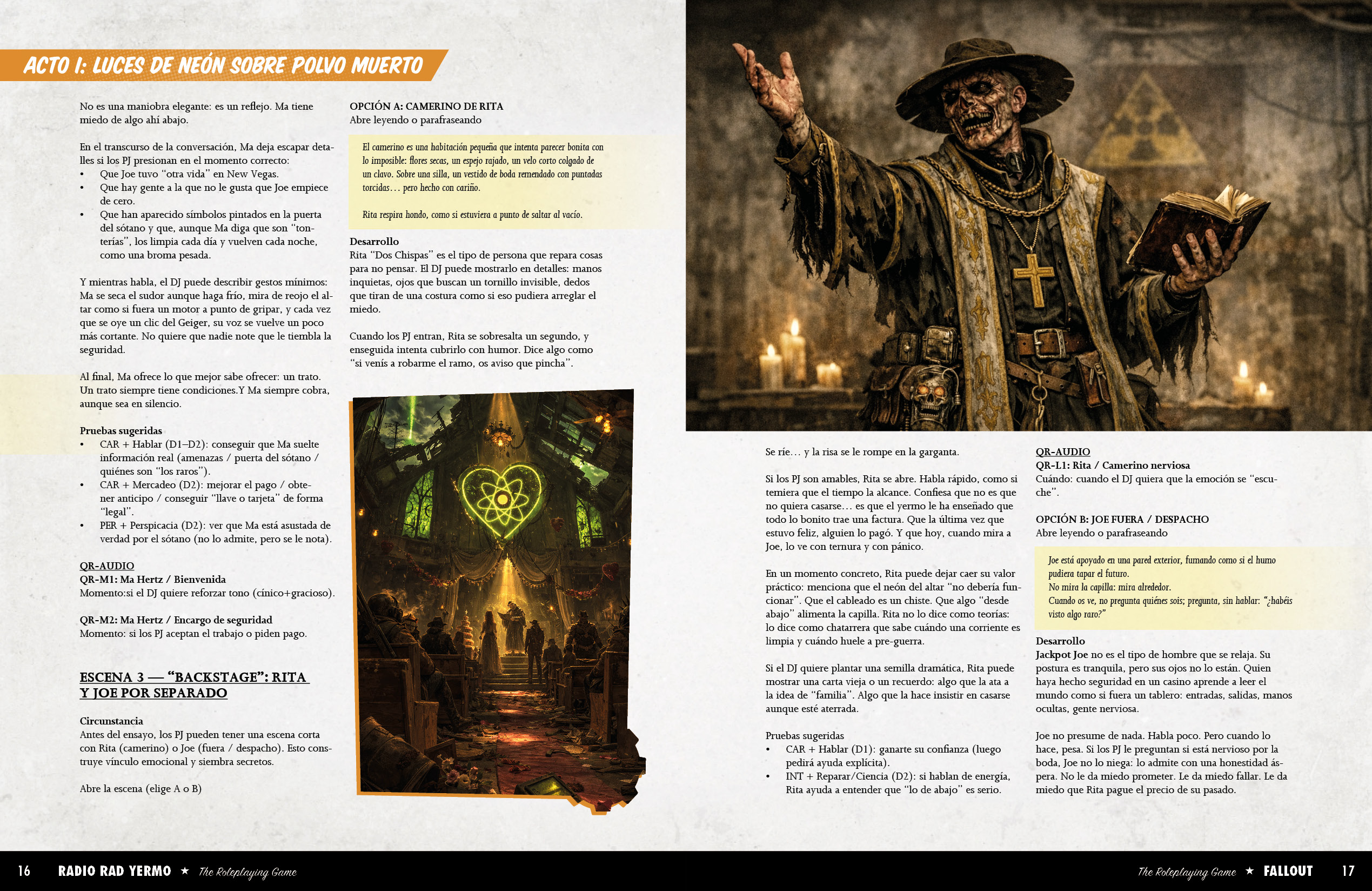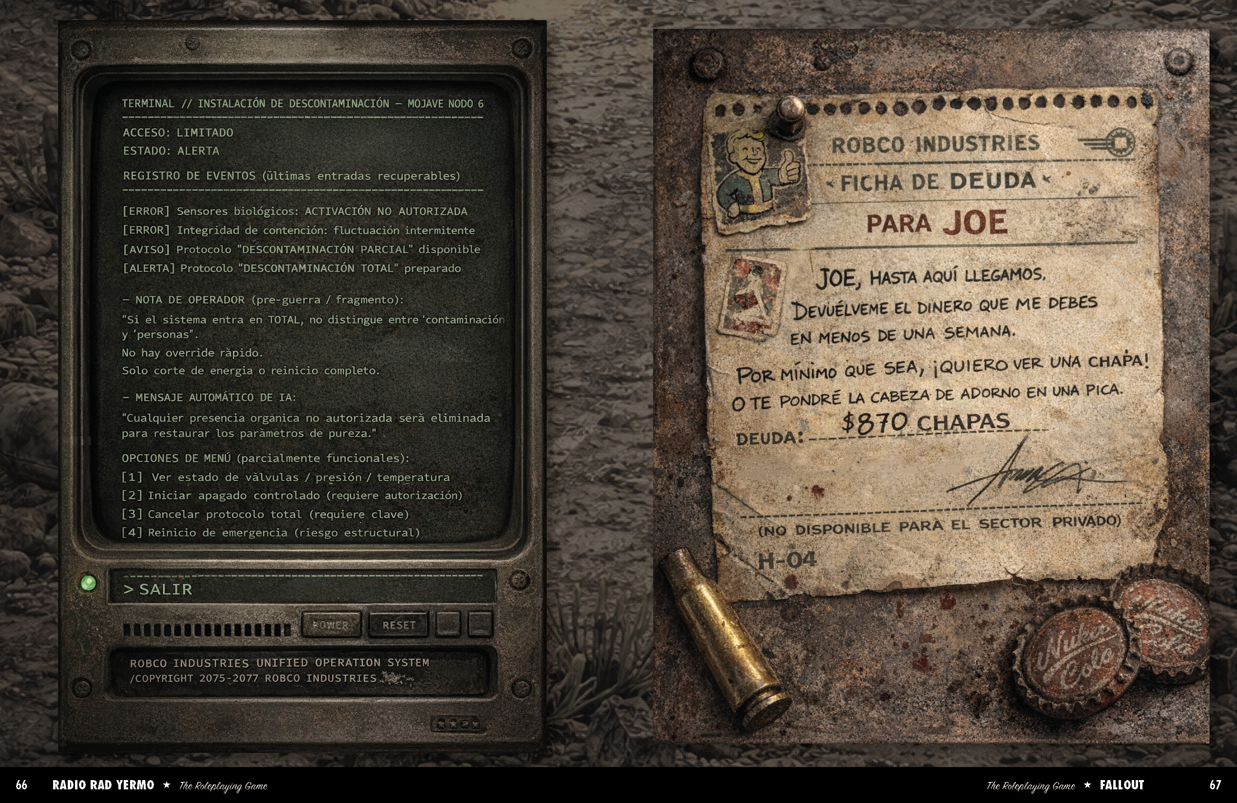 Diseñada para jugarse como aventura independiente o como expansión del mundo de Radio Rad-Yermo, Buenas Noches, Dulce Radiactivo mezcla humor negro, exploración, combate y ambientación narrativa en una experiencia pensada para mesas que quieran sumergirse en un Fallout más extraño, más romántico y bastante más torcido de lo recomendable.