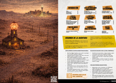 Si te apetece jugar una historia con neones rotos, romance postapocalíptico, sectas del yermo y una capilla que probablemente no cumple ninguna normativa sanitaria ni espiritual, este suplemento es para ti.