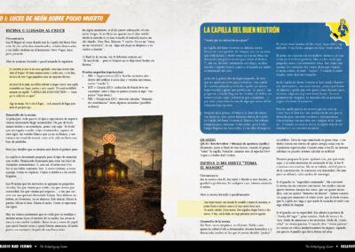 Además, este suplemento forma parte del lado más transmedia del proyecto: incluye una ambientación pensada para acompañarse con audios, handouts y materiales descargables que amplían la experiencia de juego.