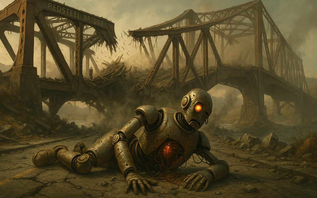 Este evento resalta la necesidad de un mantenimiento adecuado de las infraestructuras remanentes y la importancia del rol que los seres sintientes, creados por manos humanas, juegan en la lucha por un futuro mejor en el accidentado camino hacia la reconstrucción de la sociedad. A medida que el polvo se asienta, el puente de Redsteel permanece como un recordatorio tangible de las cicatrices del pasado que todavía deben abordarse con diligencia y cuidado.