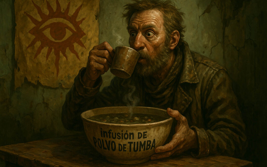 En el vasto e impredecible Yermo, donde el peligro acecha en cada esquina y la supervivencia es un arte diario, la innovación encuentra formas curiosas de manifestarse. Damas y caballeros del Yermo, preparemos nuestros paladares para una experiencia que pocos olvidarán rápidamente. La última creación del infame Culto del Ojo Ardiente está aquí y su relevancia ya ha comenzado a sacudir los cimientos de nuestra percepción sensorial: la infusión de polvo de tumba.