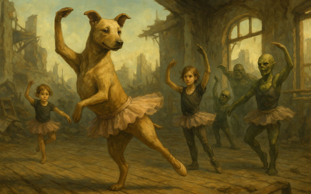 La vida en el yermo postnuclear está llena de desafíos y adaptaciones. En este contexto, el perrito sin nombre ha creado un refugio de arte y cultura que desafía las concepciones tradicionales de belleza y expresión. La academia se ha erigido en un pequeño refugio donde lo único que importa es el ritmo y la pasión por el movimiento, un lugar donde una extremidad menos no supone desventaja alguna.
